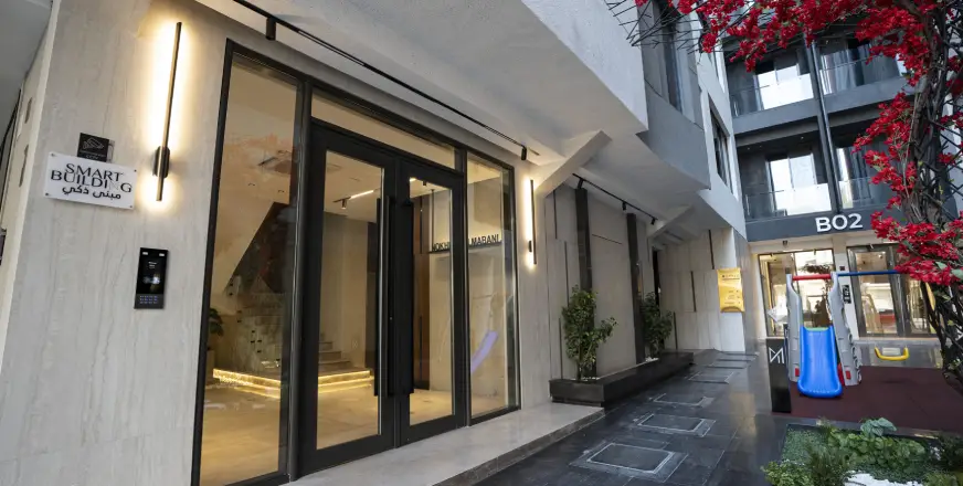 - المداخل: مكيفة وعصرية تتمتع بدخول ذكي للعمارة