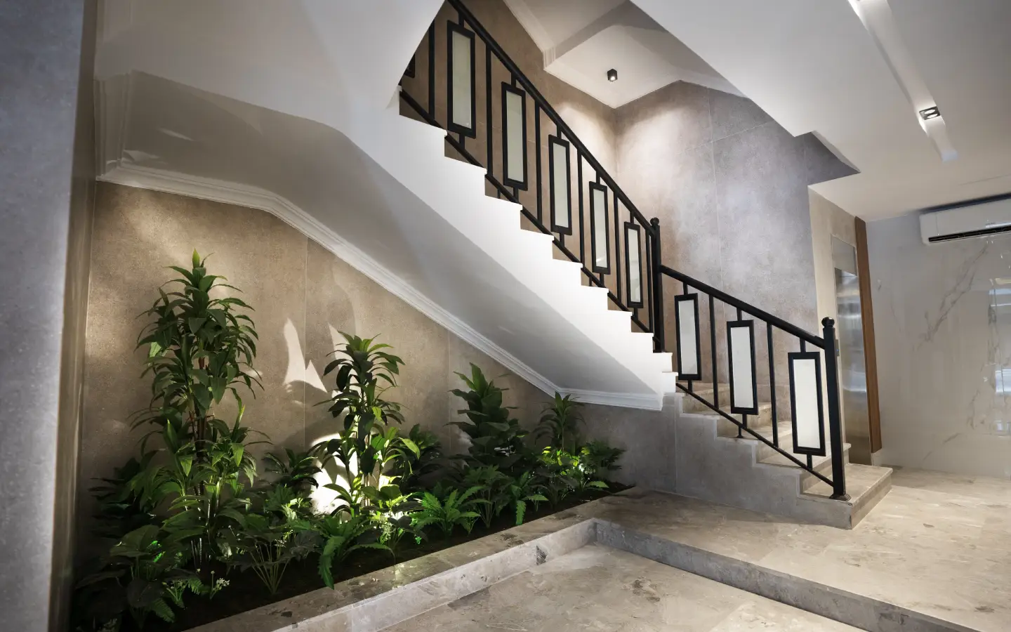 - المداخل: مكيفة وعصرية تتمتع بدخول ذكي للعمارة