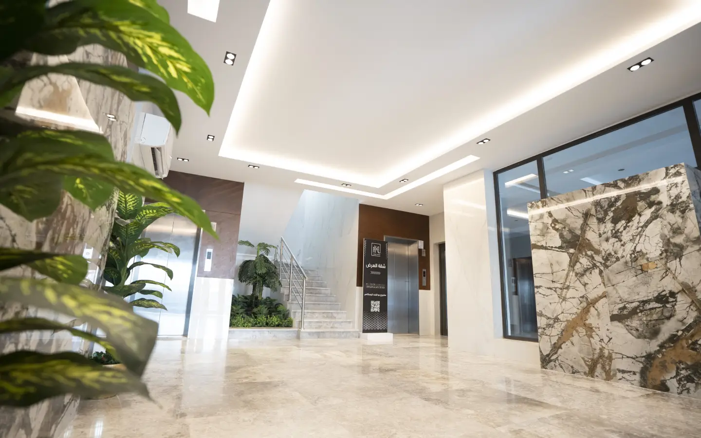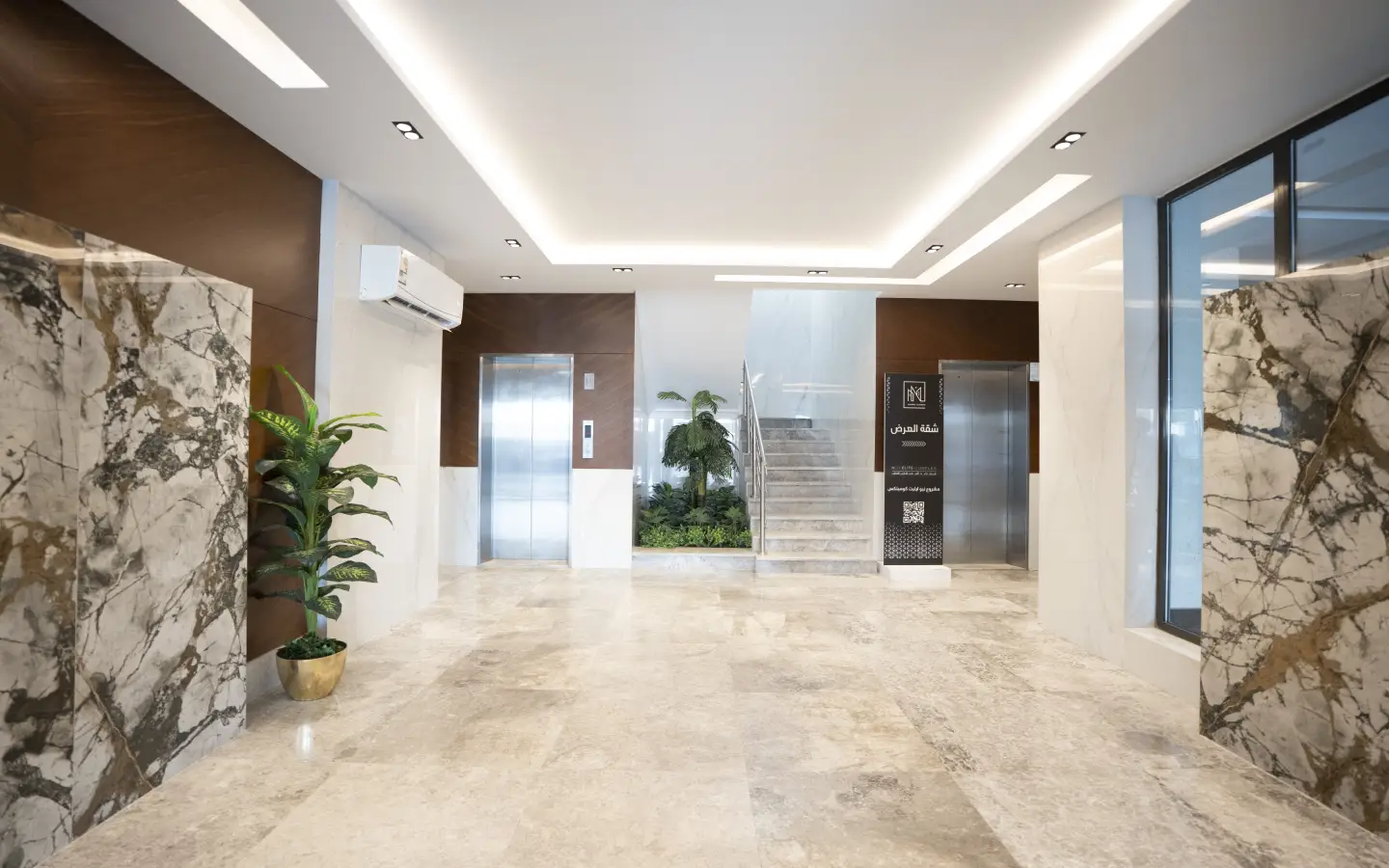 - المداخل: مكيفة عصرية تتمتع بدخول ذكي للعمارة