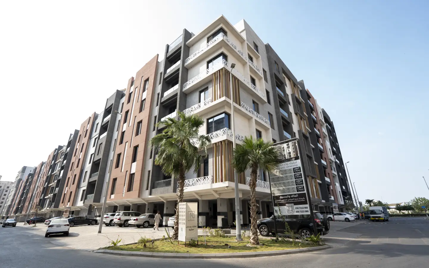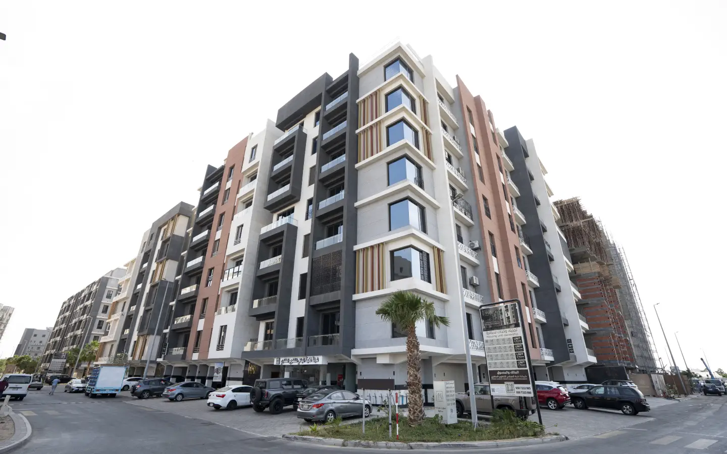 - يتكون المشروع من 8 مباني سكنية تتنوع فيه الوحدات السكنية والملاحق بمساحتها وإطلالتها المختلفة